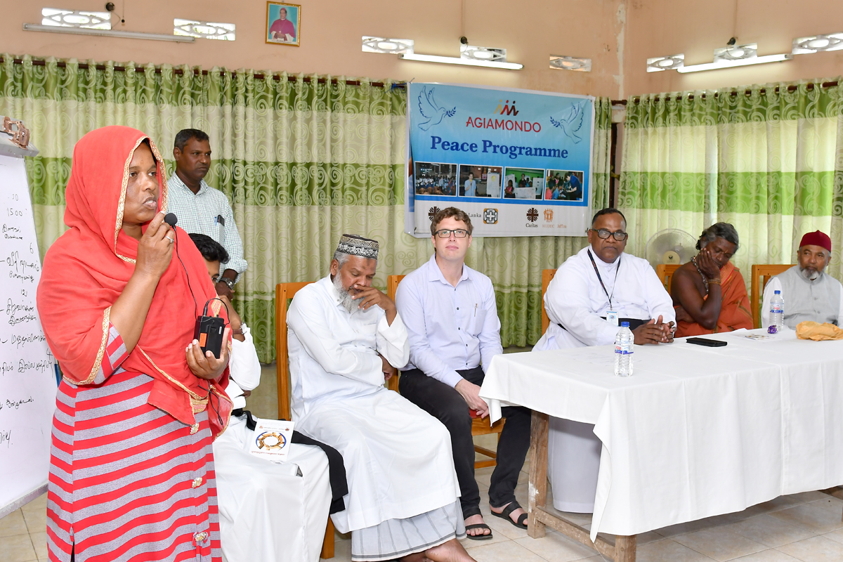Die Ambition, dass sich Menschen unterschiedlicher Religionszugehörigkeit begegnen und miteinander in den Austausch gehen, macht einen wesentlichen Teil der Friedensarbeit von AGIAMONDO und seinen Partnerorganisationen in Sri Lanka aus. Das multiethnische Land hat ein schweres Erbe zu bewältigen: Jahrhundertelang haben europäische Kolonialmächte Ressourcen ausgebeutet und Rivalitäten zwischen den Bevölkerungsgruppen verstärkt. All das ist bis heute spürbar, unter anderem in der Benachteiligung von Minderheiten.